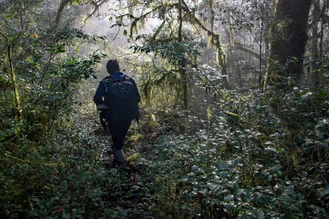 The forest has high trees with long roots and vines weaving all around the forest. The ground is uneven and rocky because it sits at the base of a mountain. There are hundreds of caves. More striking than the tricky terrain is the sense of stillness. The trees are so densely packed that light barely perforated through the thick trees. Wildlife is also extremely sparse in the region.