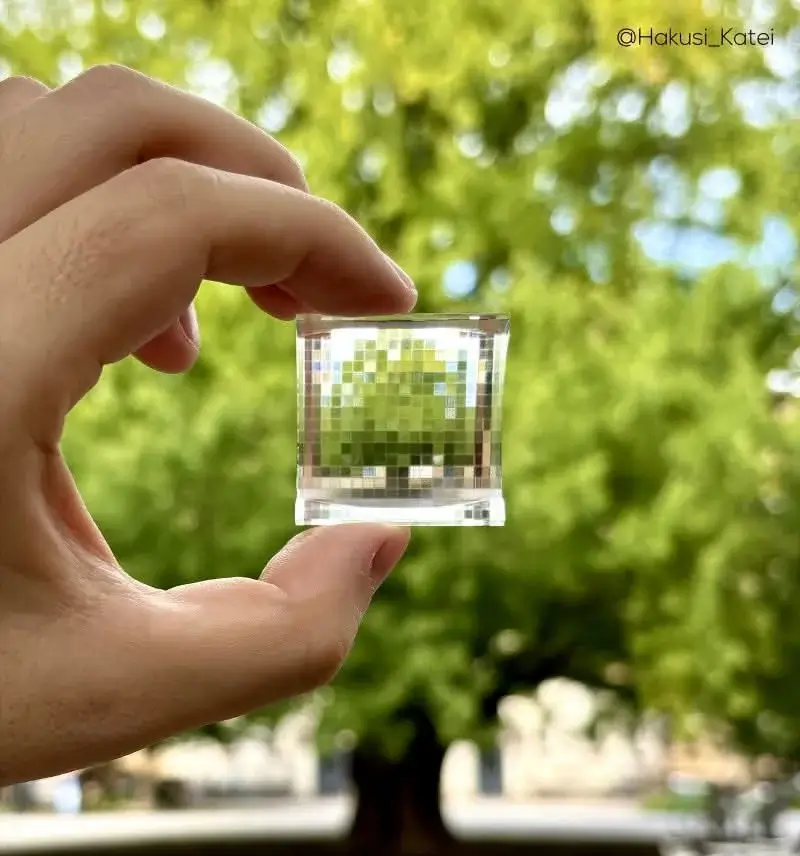 In a fascinating blend of art and technology, Japanese designer Hakusi Katei has created a small crystal cube that reduces the resolution of objects when viewed through it. The innovative design, which looks like a simple glass cube, distorts and pixelates the appearance of anything placed behind it, creating a surreal, low-resolution effect reminiscent of early digital graphics.