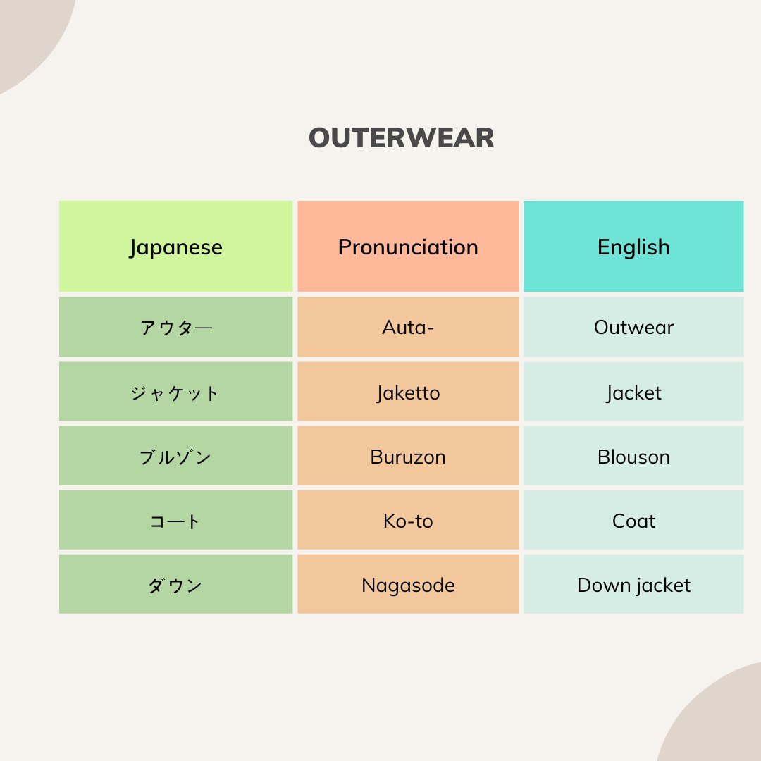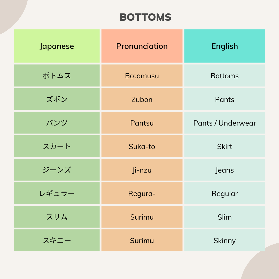 Japanese Words And Pronunciation For Clothing