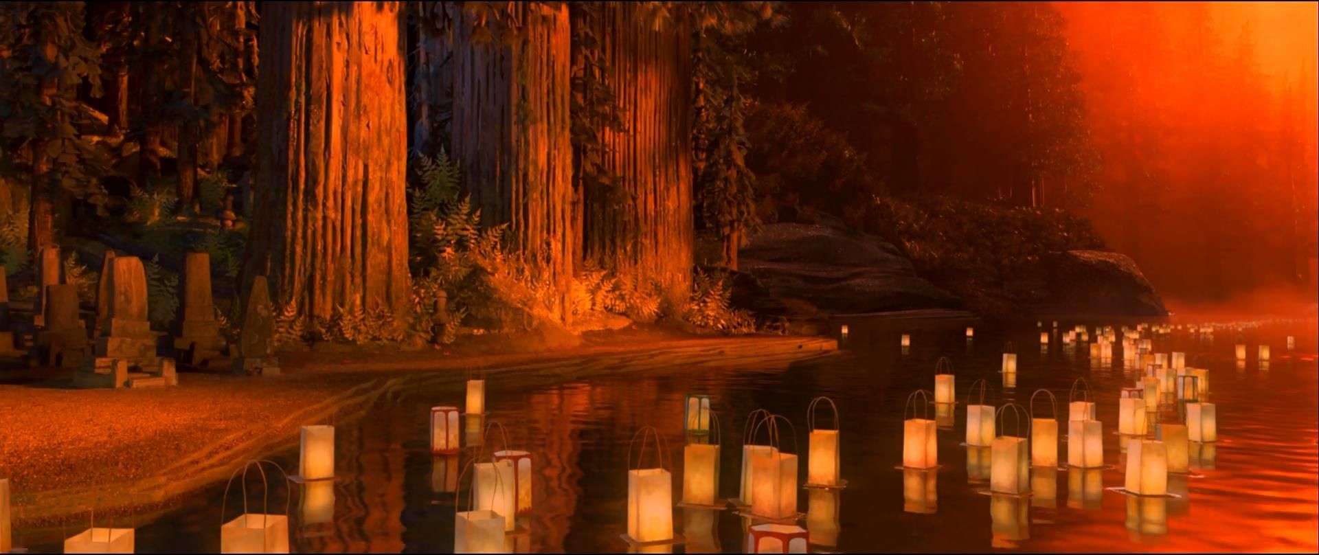 One example happens during an Obon Festival scene. The townspeople are communicating with, honoring, and celebrating the remembrances of their ancestors. It is a family reunion in spirit, not to mention a major Japanese holiday that has been observed by dozens of millions for more than 500 years. Even though they are able to contact and later see off their forebears back to the spiritual realm — via the traditional paper-lantern-floating-downriver method — the protagonist Kubo is unsuccessful. He is effectively angry and destroys his lamp because he lacks the memory, the mental snapshot.