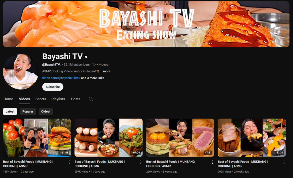 Bayashi’s kitchen is a playground of sizzling delights—think tempura towers and burger bonanzas. His Shorts blend ASMR-worthy cooking with comedy, like his viral “Fried Chicken Mountain” (20M views). A top-10 TikTok creator too, Bayashi’s 2024 collab with KFC Japan boosted app downloads by 15%, per Mobile Marketing Association Japan. His secret? A contagious zest for food and fun.
